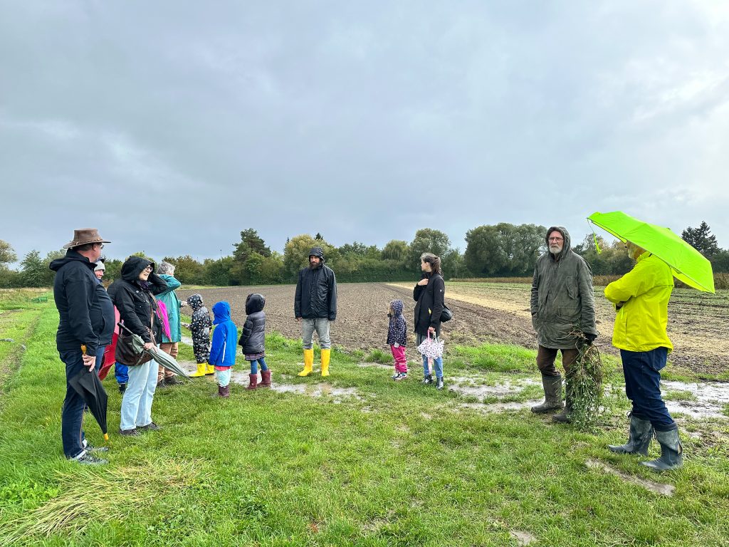 Am Vormittag hatte es noch kräftig geregnet. Nichtsdestotrotz ließen sich einige Hartgesottene die Gelegenheit nicht entgehen und kamen zur Führung über die Anbauflächen in Rödersheim.