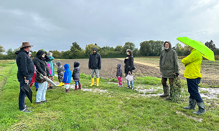 Am Vormittag hatte es noch kräftig geregnet. Nichtsdestotrotz ließen sich einige Hartgesottene die Gelegenheit nicht entgehen und kamen zur Führung über die Anbauflächen in Rödersheim.